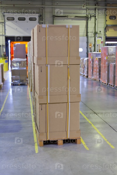 Загрузка картонных коробок на склад хранения в треке
