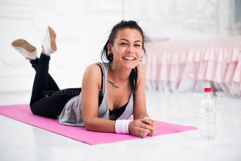 Девушка расслабляется после тренировки