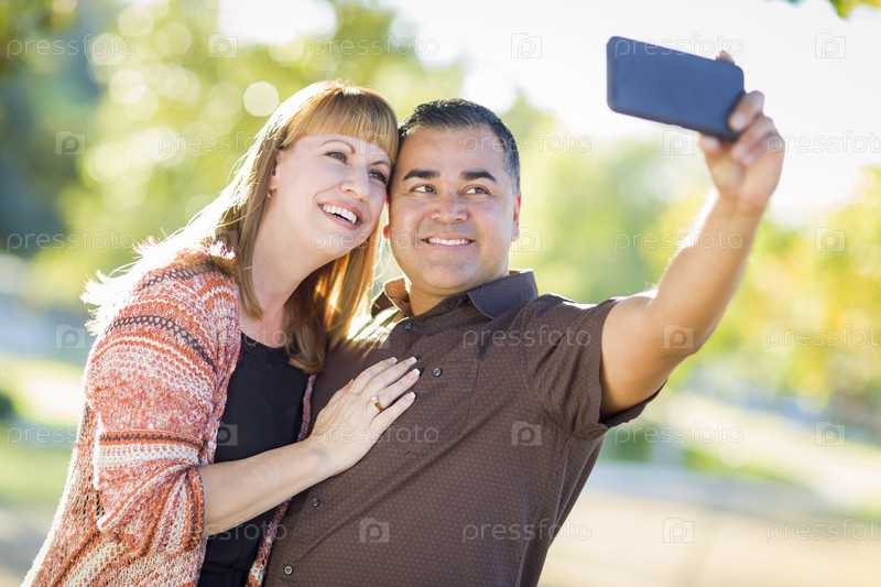 Привлекательная пара смешанной расы, селфи