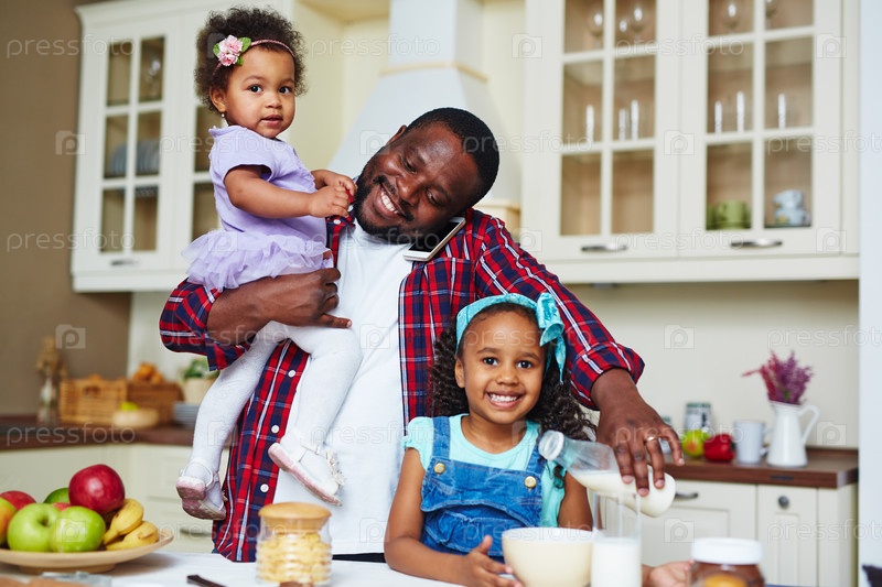 Отец с дочерьми на кухне