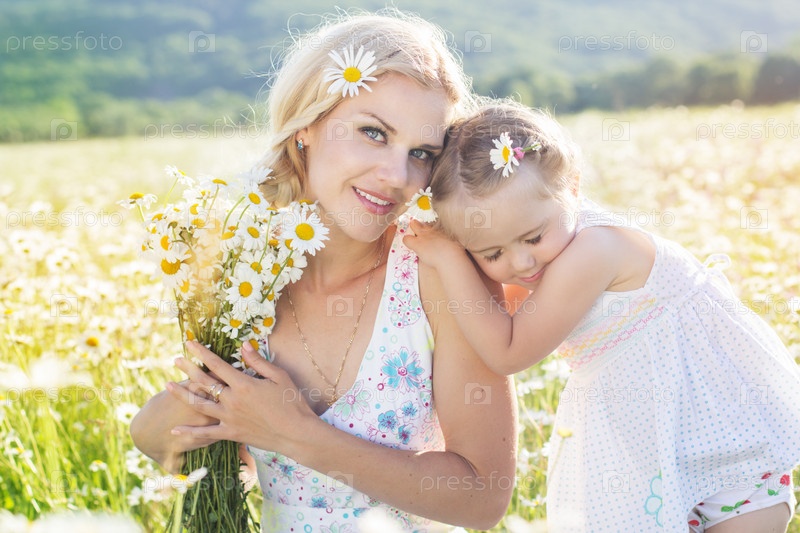 Мать и дочь в ромашковом поле