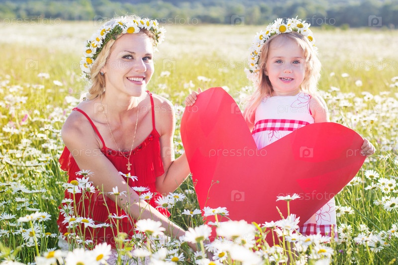 Мать и дочь в ромашковом поле