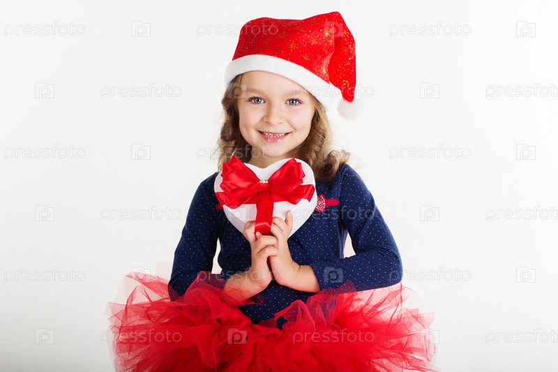 Красивая девочка с рождественским подарком