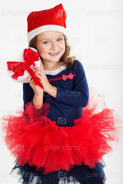 Красивая девочка с рождественским подарком