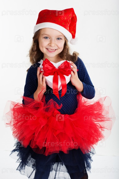 Красивая девочка с рождественским подарком