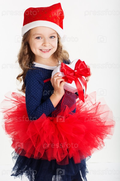 Красивая девочка с рождественским подарком