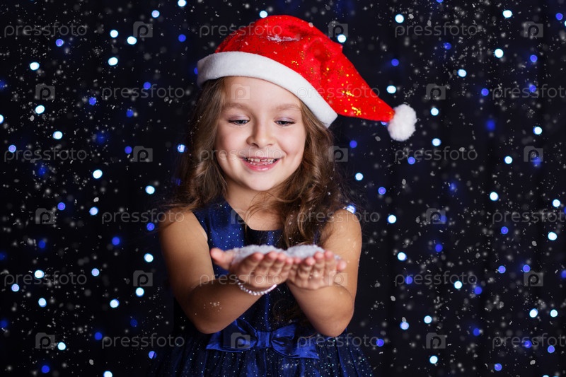 Счастливая девочка со снегом на ладонях