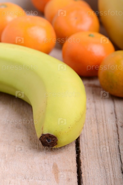 Мандарин состав красочные фрукты, бананы и оранжевый