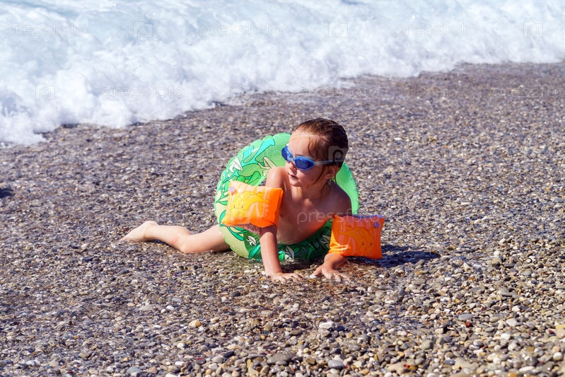 Милая маленькая девочка на морском берегу