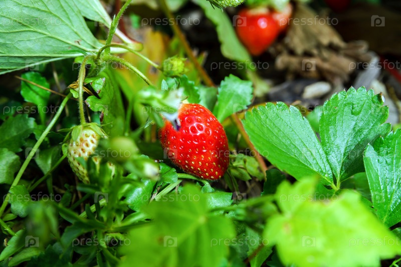 Спелая красная клубника в саду