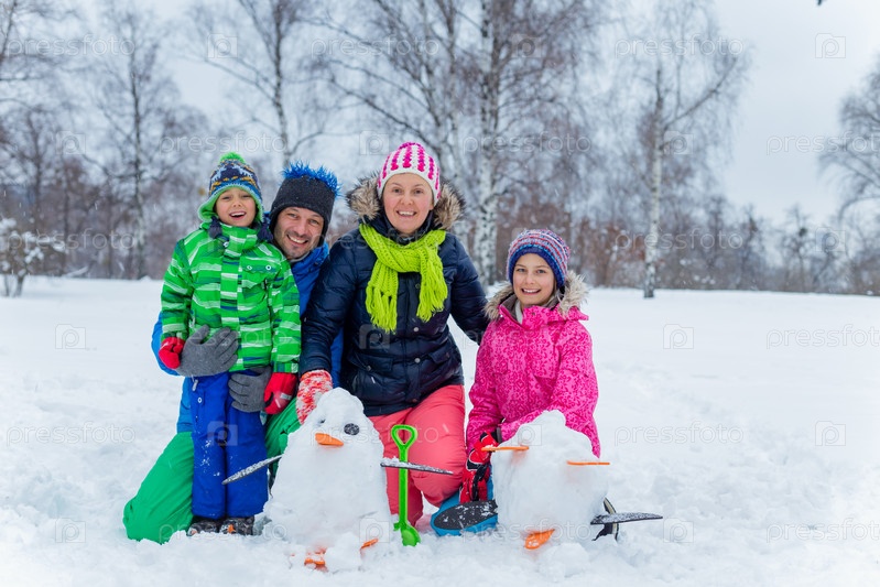 Семья со снеговиком