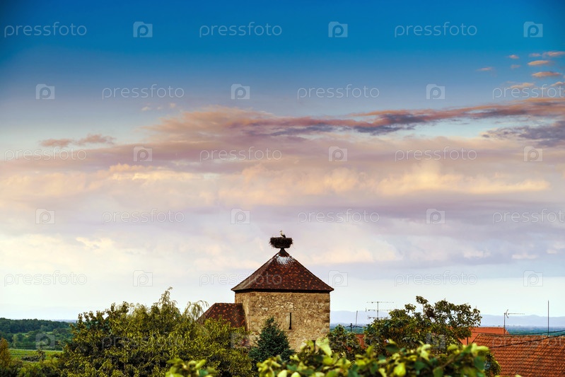 Красивый красочный закат над эльзасский деревня дамбах ла Виль