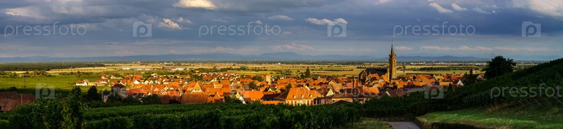 Красивый красочный закат над эльзасский деревня дамбах ла Виль