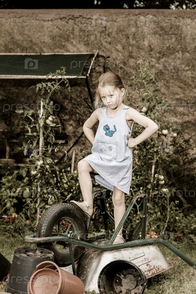Маленькая девочка на заднем дворе