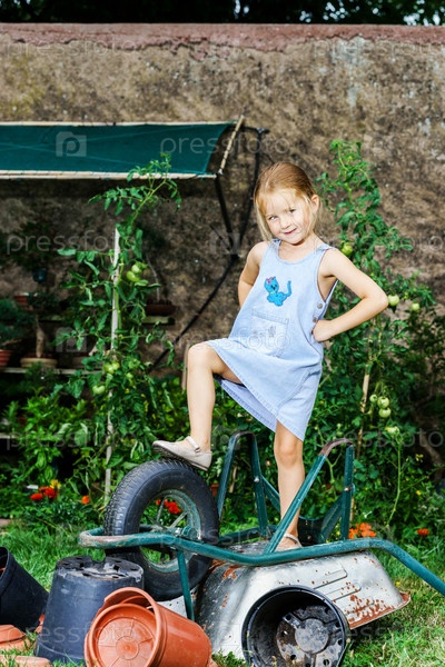 Маленькая девочка на заднем дворе