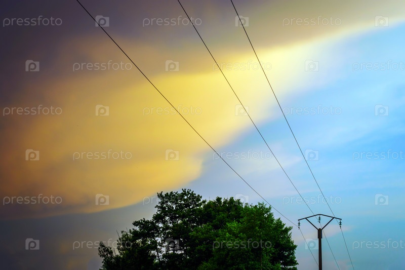 Электрические провода на фоне заката небо