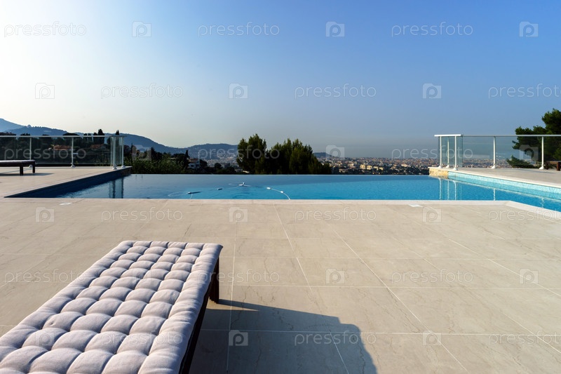 Частный плавательный бассейн. Современная вилла в Ницце, Франция
