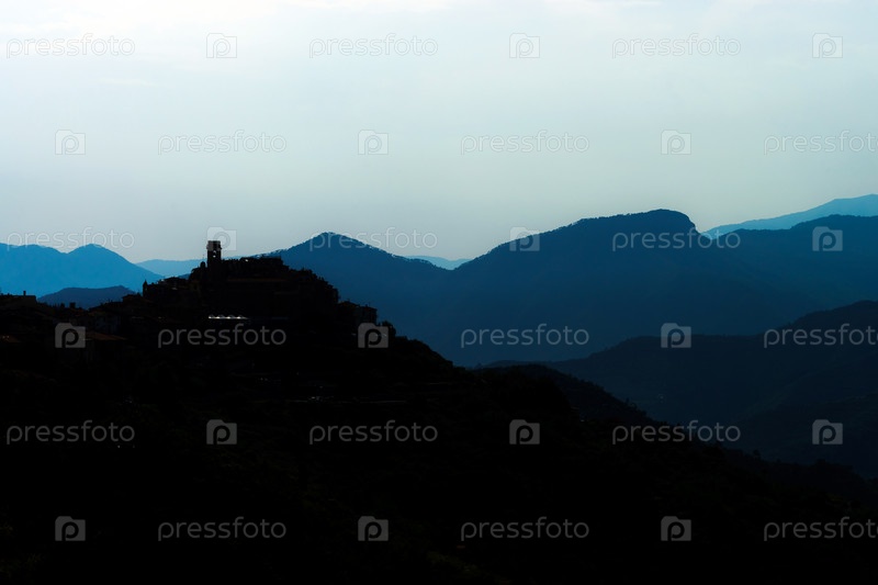 Силуэт горы вид на закат, Италия