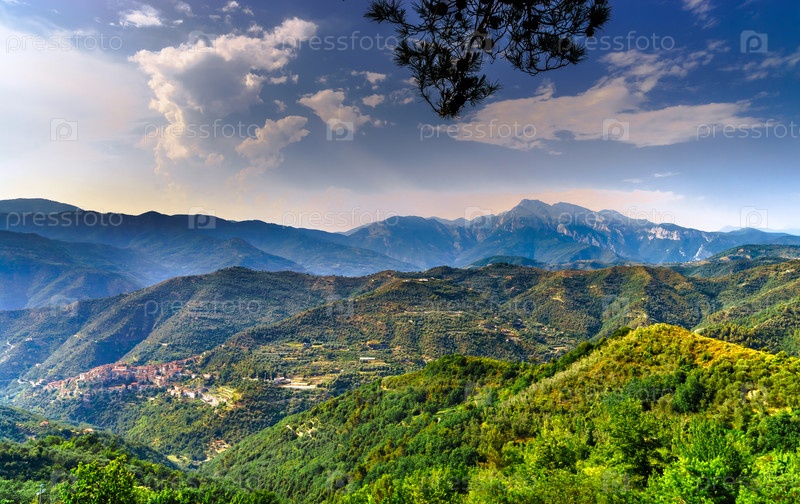 Силуэт горы вид на закат, Италия