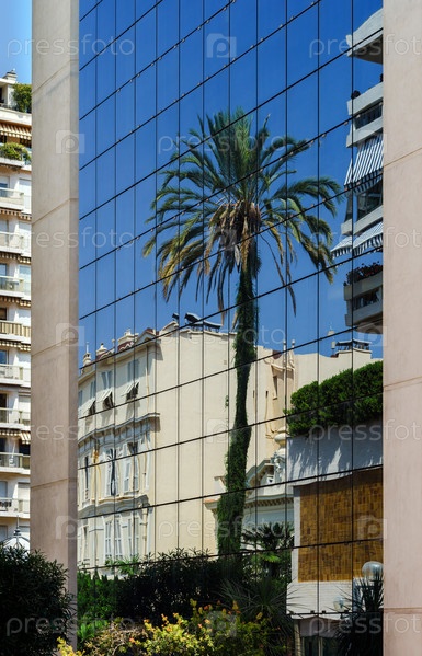 Большой пальмовое дерево отражение в стеклянной стены