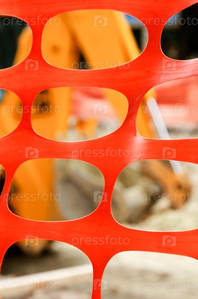 Защитное ограждения на строительной площадке для безопасности и размытый фон