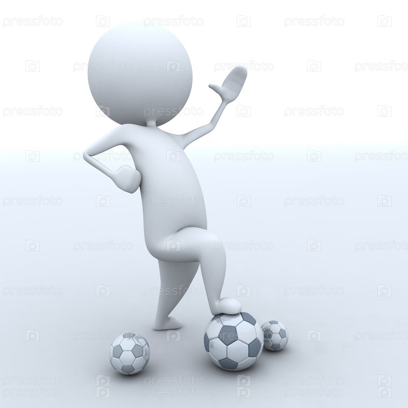 Трехмерный человечек с футбольными мячами