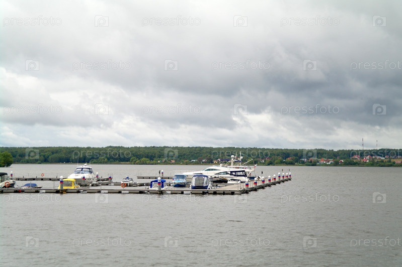 Яхты на причале на реке, Москва
