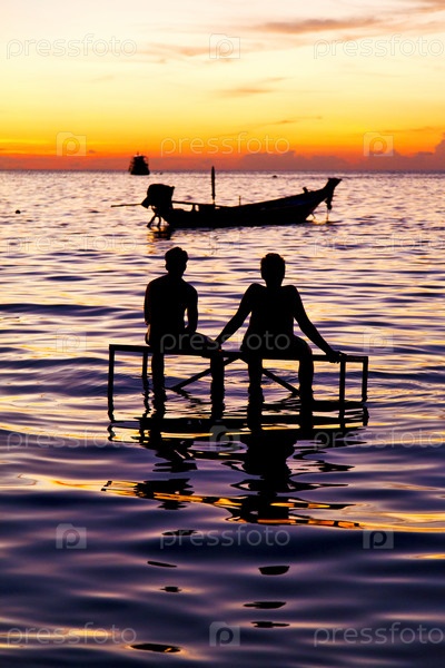 Восход солнца люди-лодка Южно-Китайское море