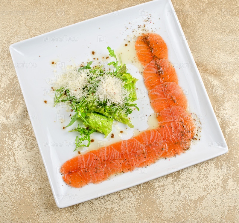 Рыбный Карпаччо с салатом и моцареллой