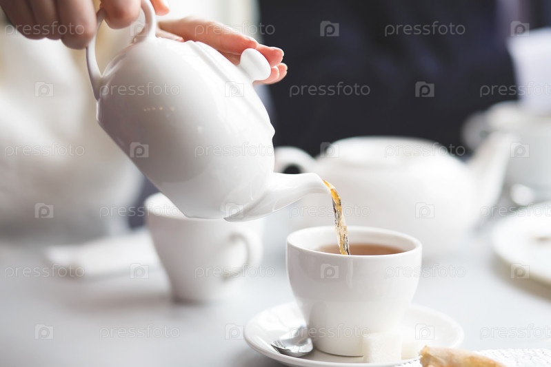 Девушка наливает чай