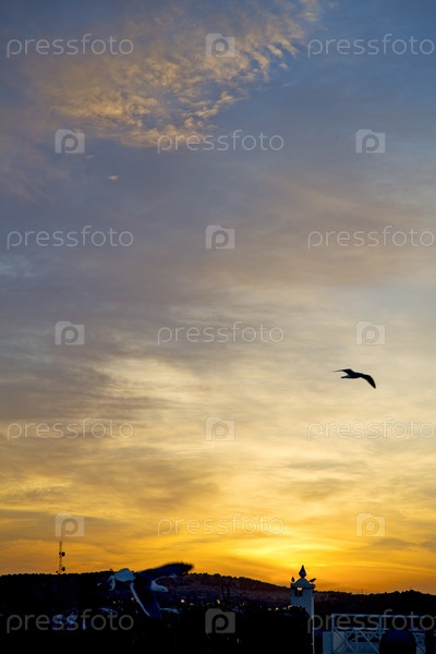 Летящая птица на фоне заката