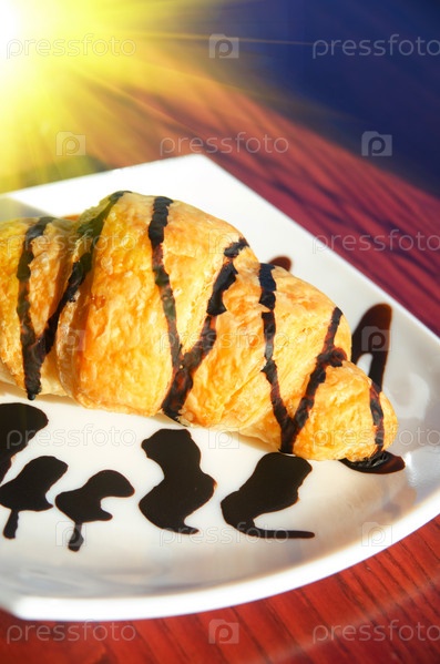 Свежий круассан на белой тарелке