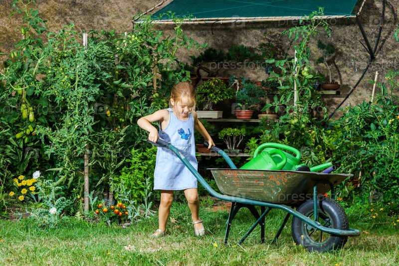 Милая маленькая девочка с тачкой
