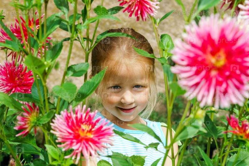 Красивая девочка в цветочном кусту