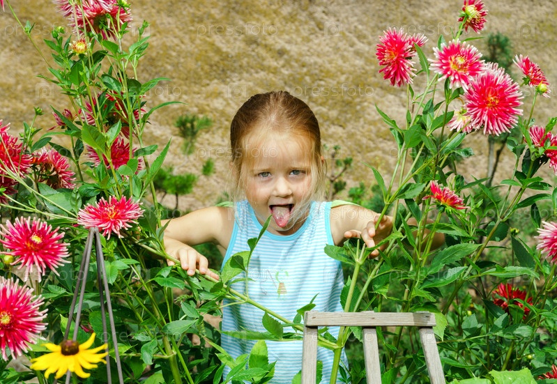 Девочка с цветами в саду