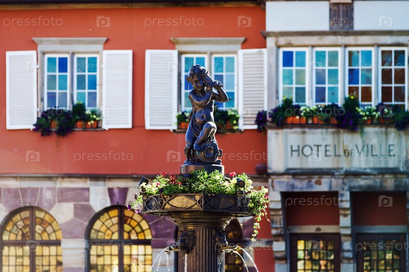 Декоративная статуя ангелка перед отелем