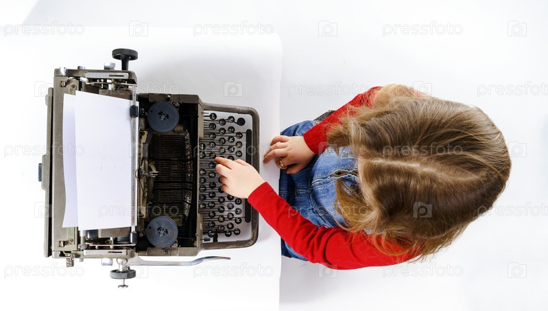 Маленькая девочка со старой печатной машинкой