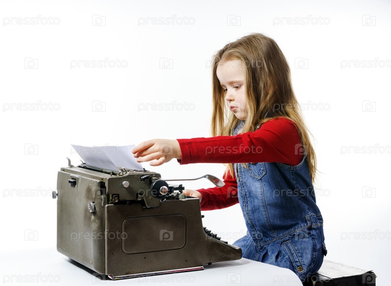 Маленькая девочка со старой печатной машинкой
