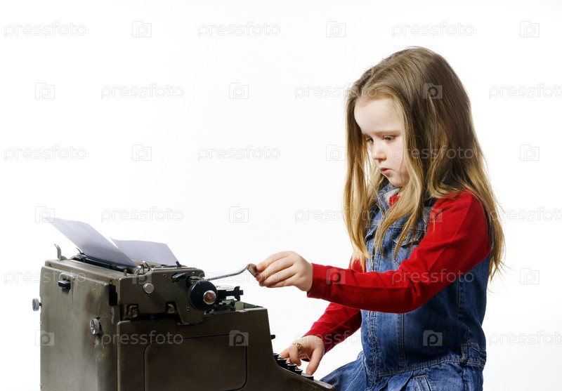 Маленькая девочка со старой печатной машинкой