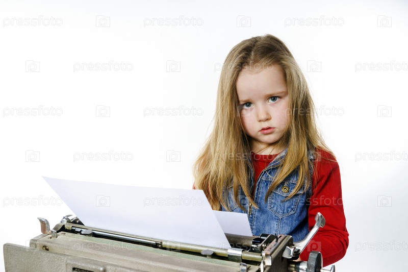 Маленькая девочка со старой печатной машинкой