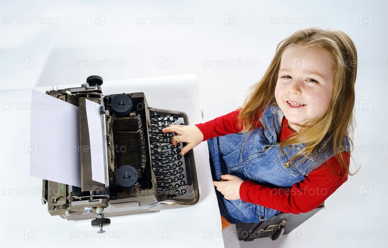Маленькая девочка со старой печатной машинкой