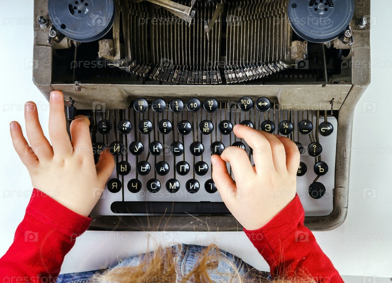 Маленькая девочка со старой печатной машинкой