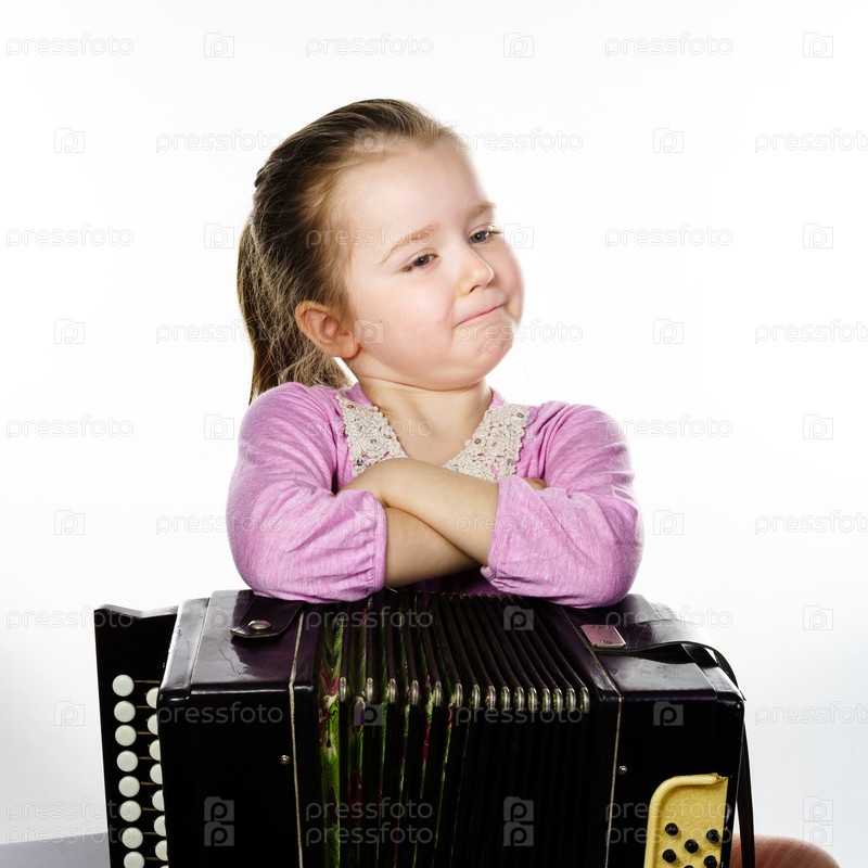 Милая маленькая девочка с баяном