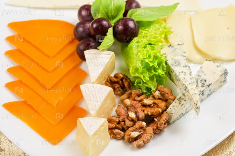 Сыр с салатом, виноградом и орехами