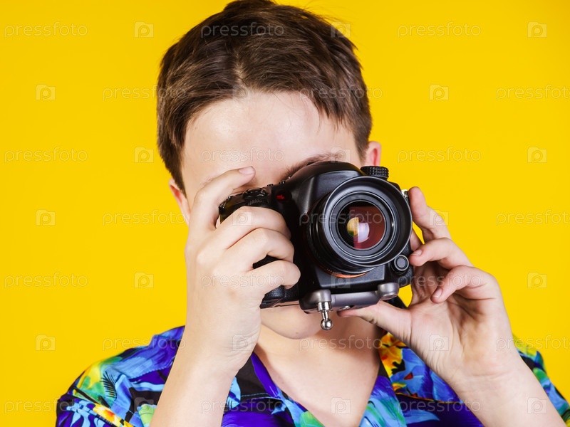 Подросток позирует с фотокамерой