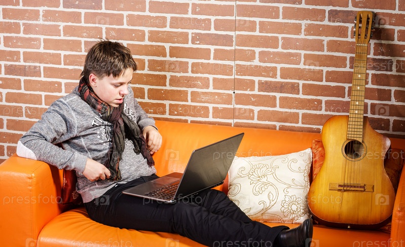Подросток работает за ноутбуком