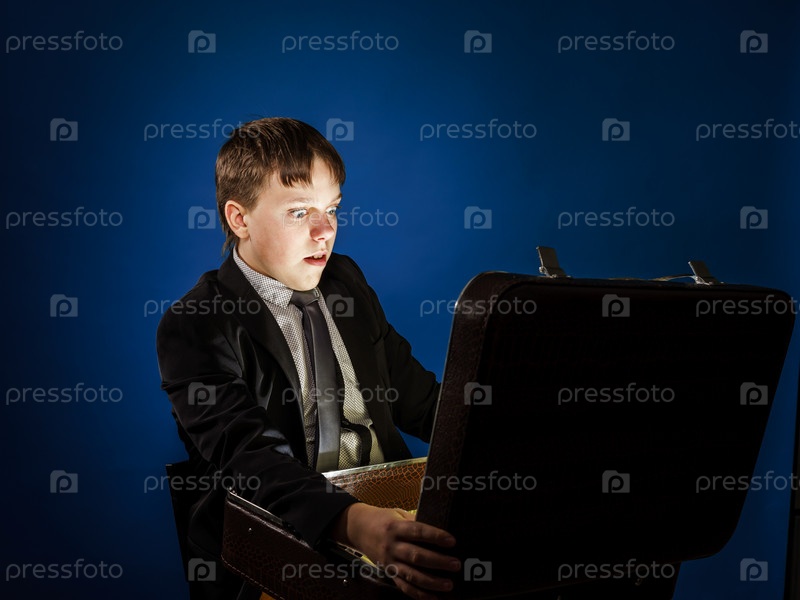 Подросток с открытым чемоданом