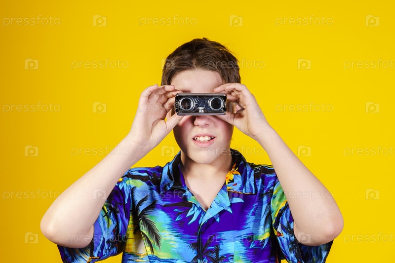 Подросток с компактным биноклем
