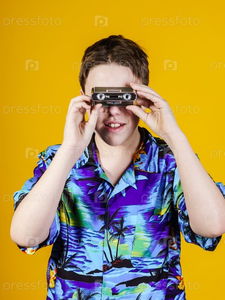 Подросток с компактным биноклем
