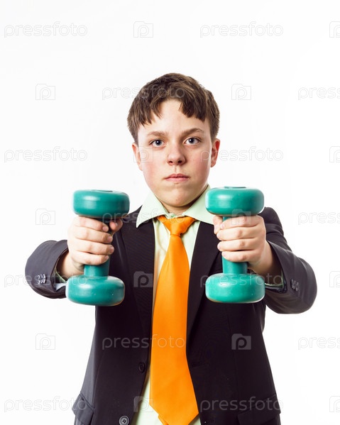 Подросток с гантелями